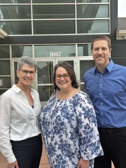 Pictured outside the former Fortress building in Fort Worth are (from left) Elisa Juarez, Childcare Specialist at Catholic Charities Fort Worth; Stacy Agee Martin, Executive Director of Fortress Youth Development Center; and Josh Audi, Chief Financial Officer at Catholic Charities Fort Worth. An early connection between Juarez and Agee Martin laid the groundwork for the partnership that will carry Fortress’s legacy forward through Catholic Charities Fort Worth.